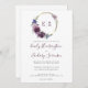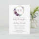 Invitation Monogramme Purple Floral Wreath QR Code Mariage