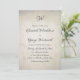 Une invitation à un mariage vintage avec une superbe calligraphie imprimée pour avoir l'air patinée avec des bords renversés et de petites taches.
