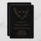 Invitation Monogramme Wreath QR Code Gold sur Mariage noir