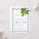 At the top, the couple’s monogrammed initials set a refined tone, followed by the wedding details beautifully arranged within the flowing blue border. The combination of classic typography, fresh lemon accents, and calming blue waves creates a timeless yet cheerful invitation style.