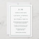 Faire-part de mariage tout-en-un simple, moderne et élégant, avec votre monogramme à deux lettres en haut et vos détails entourés d'une fine bordure. Tous les éléments de conception sont vert forêt sur un arrière - plan blanc et peuvent être changés en n'importe quelle couleur que vous souhaitez dans l'outil d'édition de conception. L'arrière dispose de tous vos détails mariages, éliminant le besoin d'une carte d'enceinte séparée, ce qui en fait une suite de faire-part de mariage économique. Un design chic et design qui conviendra à un couple minimaliste.
