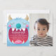 Jolie invitation à la fête d'anniversaire pour la fête du monstre de votre enfant! Illustration d'un monstre bleu avec deux cornes ouvrant sa bouche large ouverte. Les textes sont à l'intérieur de la bouche avec le nom du garçon d'anniversaire, l'âge et les informations de fête. Vous pouvez ajouter votre propre photo de votre enfant à côté de l'illustration du monstre. Les textes sont facilement modifiables en ligne.