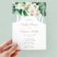 Une végétation tropicale abondante associée à des orchidées blanches d'aquarelle pour ce Baby shower neutre de sexe conception d'invitation. Le vert et le blanc évoquent le sentiment de sérénité et de tranquillité. Tout le texte est personnalisable selon vos besoins.