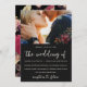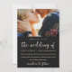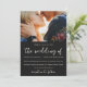 Beau et élégant faire-part de mariage photo floral moody. Cette élégante invitation est une façon chic de faire connaître aux invités votre prochaine cérémonie de mariage. Un joli script de calligraphie "le mariage de" est assis sur un arrière - plan noir foncé dramatique avec la photo du couple, et un dramatique motif de fleurs botaniques couvre le dos de la carte.