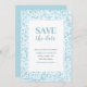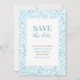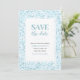 Invitation pour réserver la date avec un motif de mosaïque bleu aqua.