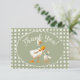 Baby shower de Silly Goose et de l'oisillon. Comprend un oisillon bébé aquarelle et Mother Goose envoyant une lettre, portant des nœuds verts neutres à l'intérieur d'un cadre ondulé. Couleurs vert et crème. Tout le libellé et la plupart des couleurs peuvent être modifiés. Pour apporter d'autres modifications, accédez à Personnaliser ce modèle. En bas, vous verrez « Voulez-vous personnaliser encore plus ce design ? Cliquez sur le bouton MODIFIER à l'aide de l'outil de conception. Cela nécessitera un certain apprentissage, mais vous pourrez modifier certaines polices et certaines couleurs, déplacer des éléments ou supprimer ce dont vous avez besoin.