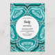 Apportez une énergie artistique moderne à votre célébration avec ce carton d'invitation d'anniversaire au motif abstrait sarcelle audacieux. Design symétrique saisissant de style mandala, mélangeant des formes sarcelles, turquoise et blanches fluides pour un look vibrant et contemporain.