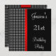 Invitations de fête d'anniversaire. Convient à tous les anniversaires et événements d'âge. Style simple avec des couleurs noir et blanc motif point sur la moitié, les bordures rouges. Rsvp est disponible sur demande dans le même style.