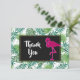 Un carte de remerciements de fête avec un motif feuille tropical vert et un cadre noir avec une bordure dorée superposée. Une illustration de flamand rose apporte une touche de fantaisie. Message sur le dos qui peut être personnalisé.