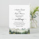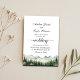 An elegant Wedding Invitation with watercolor mountains and pine trees that you can customize with your details.