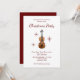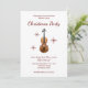 Invitation de fête de Noël musicale, avec un violon et un script design sur un arrière - plan blanc. Avec des lettres typographiques personnalisables en rouge, vous pouvez ajouter vos propres informations. Le dos a une couleur rouge correspondante comme accent. Une façon spéciale de planifier votre fête traditionnelle avec une touche de musique classique.