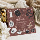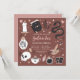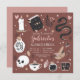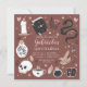 Planifiez votre soirée d'anniversaire de quinceanera à thème Halloween avec ces invitations chic éffrayantes dans une palette de couleurs inspirées de la nature boho. Le design présente des illustrations d'un serpent, d'un livre d'épices, d'une bougie, d'un pot, d'un crâne, de cartes tarot et d'une potion entourant les détails de la célébration de la quinceanera.