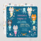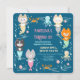 A nautical themed birthday invitation decorated with cute mermaid kittens.