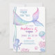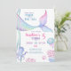 A nautical themed birthday invitation featuring illustrations of the seabed, a cute octopus, an adorable jellyfish, and a magical mermaid tail.