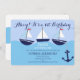 Invitation nautique de fête d'anniversaire de ce garçon la ?ère comporte 3 bateaux à voile mignons et une ancre sur la mer. Il est prêt d'être personnalisé et convient en tant que la ?ère invitation de l'anniversaire d'un garçon ou 2ème invitation d'anniversaire.