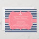 L'invitation classique avec un thème nautique, se perfectionnent pour une douche ou un baby shower nuptiale. La petite ancre mignonne, les rayures de marine et un ruban et un cadre roses font à ceci le choix parfait pour votre nautique, été, ou échouent la célébration orientée !