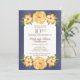 Carton d'invitation personnalisé pour une fête d'anniversaire de mariage avec un cadre de fleurs jaunes sur fond bleu marine iridescent