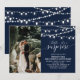 Célébrez votre jour spécial avec cette invitation personnalisée d'anniversaire de mariage avec photo. Ce design présente une belle typographie "chut...c'est une surprise" et des guirlandes lumineuses sur un fond bleu marine. Vous pouvez personnaliser le texte pour n'importe quelle année. Remplacez la photo d'exemple par votre propre photo. Des fournitures de fête assorties sont disponibles dans ma boutique BaraBomDesign.
