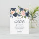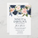 Invitation Navy Blue Blush rose Floral 90e fête d'anniversair