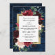 Invitation Navy Blue Burgundy Rustic Budget QR Code Wedding