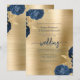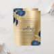 Invitation Navy Blue Floral Gold Brushed Metal Wedding