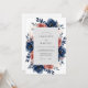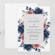 Deep navy blue anemones and dusty rose roses create a striking botanical border. This watercolor design captures a moody yet romantic atmosphere with its rich indigo foliage and muted peach accents. Perfect for a sophisticated autumnal or winter marriage event, the artwork evokes a sense of timeless elegance.