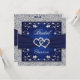Invitation Navy Blue, Silver Floral, Hearts Fête de l'mariée