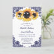 Invitation Navy Blue Sunflower Floral Lace Rustic Wedding