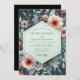 An enchanting blend of deep navy and blush pink blooms creates a moody, romantic atmosphere. Delicate petals and lush foliage weave together in a painterly style, evoking a sophisticated, twilight ambiance.