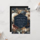 Experience a dramatic and opulent aesthetic with this moody floral design. A deep navy backdrop sets the stage for a luxurious bouquet of cream, dusty blue, and russet roses. Luminous golden foliage and delicate buds are scattered throughout, creating a rich contrast and an atmosphere of timeless elegance. This sophisticated arrangement is perfect for an enchanting evening affair.