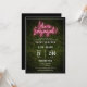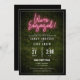 "We're Engaged" design inspiré du néon rose sur un arrière - plan de boxwood avec texte et garniture blancs.