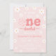 Jolie fille 1ère année d'invitation à l'anniversaire comprend un texte de typographie rose gras "onederful" au milieu et entouré de fleurs super rétro.