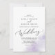 Cette carte de faire-part de mariage violet à l'aquarelle est parfaite pour un mariage moderne. Le design simple et classique présente une touche d'eau violette pastel lavande avec un style minimaliste et élégant.