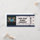 Modern, customizable New Year Music Concert ticket invitation with envelope. Perfect for a post-holiday party, club event, or fundraiser. Easily change the date (Jan 02), time, price ($45), and address. An elegant navy and grey design for a live music event.