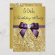 Élégante invitation personnalisée à la fête du 50e anniversaire avec de magnifiques couleurs dorées paillettes d'images imprimées bijoux, motifs de pierres précieuses, de mignonnes images d'arcs et de rubans mauves imprimés d'or brillant et de jolis diamants numériques, des bijoux d'or sur un arrière - plan chic dégradé de texte pourpre.Veuillez noter : Tous les invitations de Zazzle ont des graphismes imprimés à plat - pas du vrai métal, des arcs, des bijoux ou des paillettes. Ces invitations classe, glamour, glamour et glamour sont décorés / imprimés de chaque côté. Belles invitations à fêtes chic, branchées et modernes. Si vous avez besoin d'aide pour customiser votre produit, veuillez me contacter par l'intermédiaire de mon magasin. Je serai heureux d'aider.