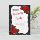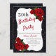 Elégante parties scintillant noire et roses rouges invitation à la fête d'anniversaire pour les femmes de tout âge. L'âge peut être modifié pour n'importe quel âge. Le texte peut être changé en n'importe quoi pour s'adapter à votre événement. Les polices, la couleur de police et le texte sont entièrement personnalisables ! La forme et le type de papier peuvent être customisés pour correspondre à votre budget et à votre goût!