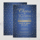 Famille Invitation et amis à une élégante célébration de jalon avec cette élégante invitation de fête d'anniversaire. Le design comprend des points de confettis en faux feuille d'or moderne et une typographie d'inspiration art déco vintage sur un arrière - plan en acier inoxydable bleu marine. Veuillez noter que le texte est imprimé en couleur et non en papier métallique. Cette carte est mise en place pour une soirée surprise du 50ème anniversaire de mariage en or, mais tout le texte est simple à customiser pour toute année ou occasion.