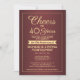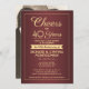 Famille Invitation et amis à une fête d'anniversaire élégante avec des invitations à la fête de la Bourgogne et de l'or sur mesure. Tout le libellé de ce modèle (y compris "Cheers to 40 Years") est mis en place pour un ruby 40ème anniversaire mariage, mais est simple à personnaliser pour n'importe quelle année ou type d'événement. Le design se compose d'une simple bordure moderne sur un arrière - plan sombre et rouge, d'une calligraphie de script élégante et d'une typographie vintage classique de l'art déco. Veuillez noter que l'or est imprimé en couleur et non en métal. Joyeux Anniversaire et applaudissements au couple pour leur célébration de jalon!
