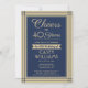 famille d'Invitations et amis à une fête d'anniversaire élégante avec des invitations personnalisées navy bleu et or fête. Tout le libellé de ce modèle (y compris "Cheers to 40 Years") est mis en place pour un 40ème anniversaire, mais est simple à personnaliser pour n'importe quelle année ou type d'événement. Le design se compose d'une bordure rayée moderne, d'une calligraphie de script élégante et d'une typographie d'art déco vintage classique. Veuillez noter que l'or est imprimé en couleur et non en métal. Le design neutre pour les femmes convient aussi bien à un homme qu'à une femme. Bonjour et Joyeux anniversaire !