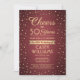 Famille Invitation et amis à une fête d'anniversaire élégante avec des invitations à la fête de bordeaux et d'or personnalisés. Tout le libellé de ce modèle (y compris "Cheers to 50 Years") est mis en place pour un 50ème anniversaire, mais est simple à personnaliser pour n'importe quelle année ou type d'événement. Le design comprend des points de confettis de la cire moderne sur un arrière - plan métallique en faux rouge foncé, une calligraphie de script élégante et une typographie vintage classique de l'art déco. Veuillez noter que l'or est imprimé en couleur et non en métal. Le design neutre pour les femmes convient aussi bien à un homme qu'à une femme. Bonjour et Joyeux anniversaire !