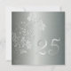 Élégante invitation de fête d'anniversaire de mariage de 25 ans avec un effet brillant en damassé argenté avec une touche florale. Teinté d'un sous-ton vert aqua doux, ce faire-part formel élégant sera sûr d'impressionner vos invités à votre fête d'anniversaire de noces d'argent de Paper Expressions.