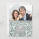 Faire-part de vingt-cinquième anniversaire de mariage charmant sur fond aqua pastel avec une superposition de feuilles d'argent élégantes. Bannière argentée assortie sur le recto et le verso de la carte. Téléchargez une photo spéciale pour remplacer ce modèle de photo. Personnalisez le texte du recto et du verso de l'invitation avec vos informations. Ce design est disponible sur d'autres articles dans ma boutique.