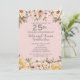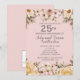 Invitation élégante et vintage pour une fête d'anniversaire de mariage de 25 ans avec des fleurs roses, champagne et ivoire.