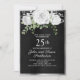 Élégant, vintage, noir et argent avec bouquet floral blanc invitation pour une fête d'anniversaire de mariage de 25 ans.