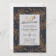 Invitez votre famille et vos amis à célébrer vos 50 ans de mariage avec ces invitations élégantes avec des éléments floraux dorés sur fond sombre. Écriture or 50 ans et détails dans une typographie moderne tendance.