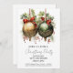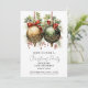 Invités Invitations à votre fête de Noël avec cette élégante invitation de fête de Noël aquarelle. Doté de boules rouges et vertes classiques aux accents d'or, d'arcs rouges et de feuilles saints, ce design festif donne le ton d'une joyeuse rencontre saisonnière. Personnalisez facilement les détails de votre fête pour un look élégant et accueillant.