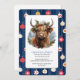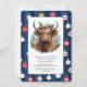 Invitation Noël Blue Party Baubles Highlander Cow