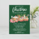 Brosse moderne Script Noël Cookie Décoration Party Invitation Card comprend un Watercolor Gingerbread Train avec bonbons, biscuits et pins. Arrière - plan vert.