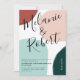 Des tons de Noël hivernaux aux formes géométriques abstraites en typographie élégante rouge, turquoise, rose et verte. La modernité s'adapte à la tradition de Noël et d'hiver. Parfait pour les thèmes de mariage hivernal.