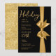 Invitation Noël Holiday Open House Gold Ribbon Noir